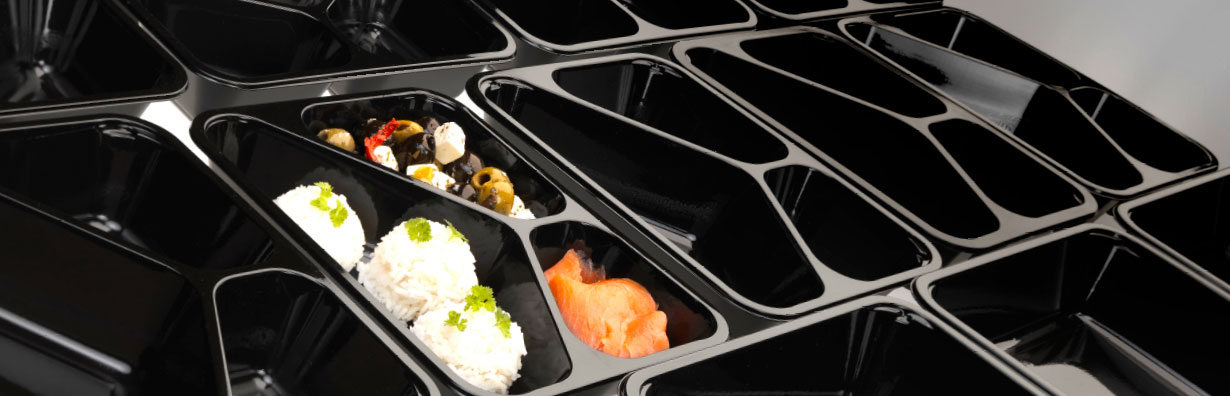 Aantrekkelijke presentatie | Het materiaal en de optionele topsealfolie geven een glanzende, professionele uitstraling. Een zwarte CPET schaal laat de kleuren van gerechten mooi uitkomen, terwijl de glans van de folie zorgt voor een frisse look.